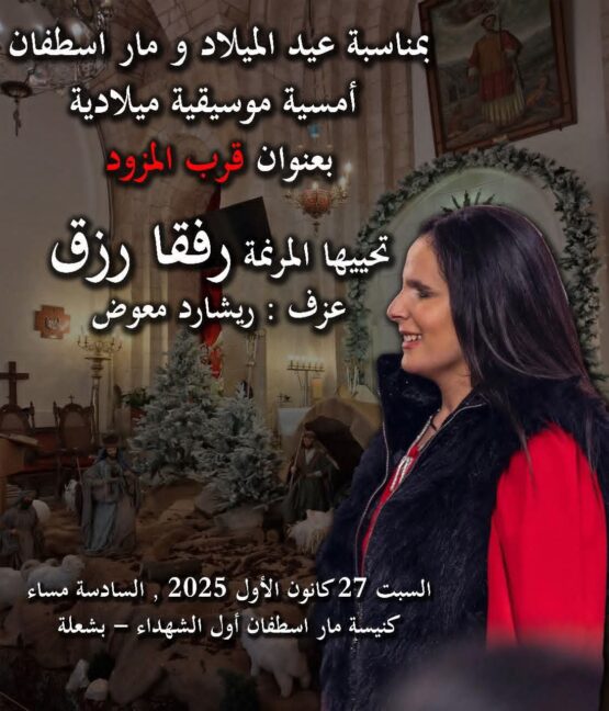 تستضيف كنيسة مار اسطفان أول الشهداء في بلدة بشعله أمسية موسيقية ميلادية بعنوان "قرب المزود"، وذلك مساء السبت 27 كانون الأول 2025 عند الساعة السادسة.