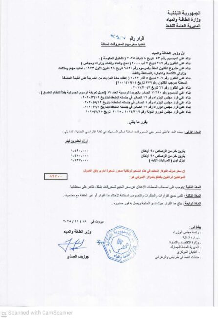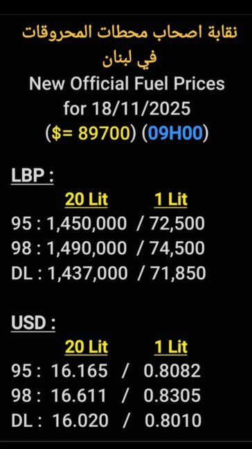 البنزين 95 أوكتان: 1.450.000 ليرة لبنانية .