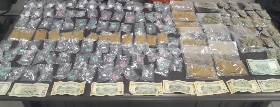 وبتفتيشهم ضُبط بحوزتهم كمية كبيرة من المواد المخدرة المعدّة للترويج عبارة عن عشرات الاكياس والمظاريف التي تحتوي الكوكايين والمارجوانا وحشيشة الكيف.