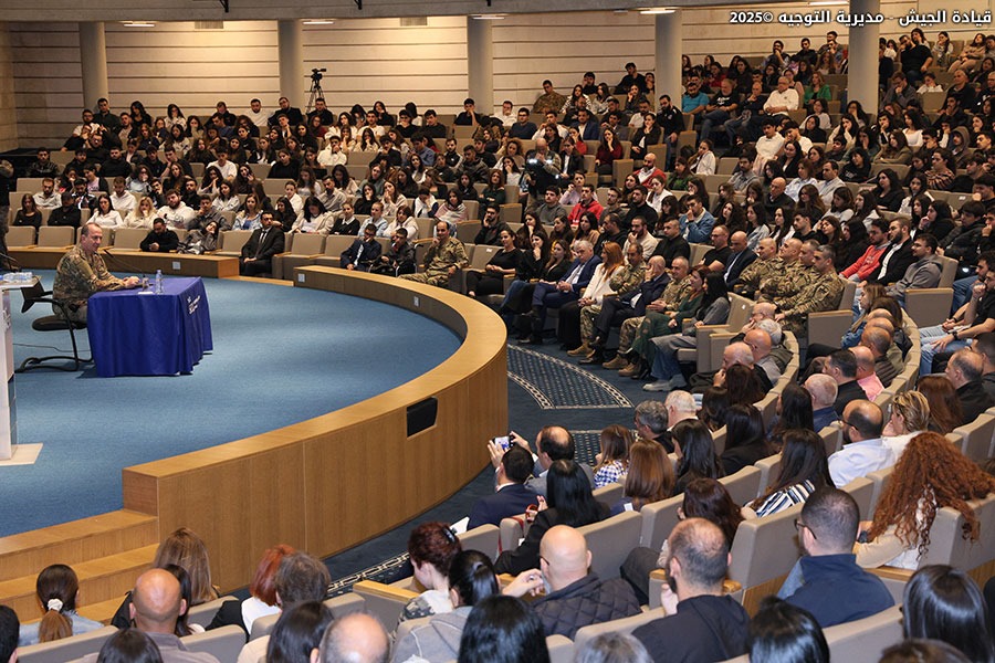 نادراً ما نلتقي شخصيّة لا تحتاج إلى أوراق كي تُخاطب، لا تتخبّط بين الكلمات والأحرف، ولا تقلّب الصفحات بحثاً عن جملة مناسبة. قائد الجيش لا يقرأ بل يحكي من القلب. فخلال حوار مفتوح مع طلاب جامعة الروح القدس – الكسليك بمناسبة العيد الـ82 للاستقلال، اختار قائد الجيش العماد رودولف هيكل العفوية بدل الرسميات والصدق بل الكلمات المُعدّة، فدخل إلى عالم الطلاب ببساطة وابتسامة لا تفارق وجهه.
