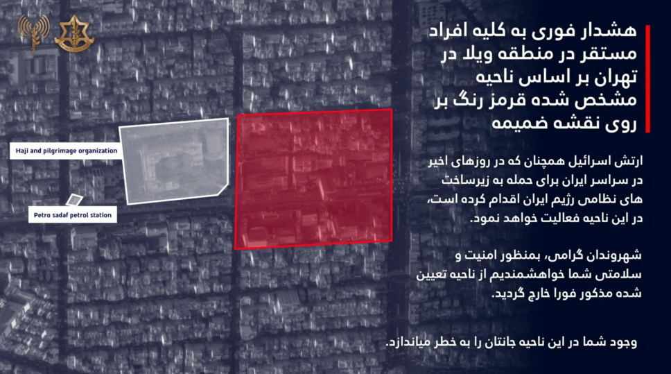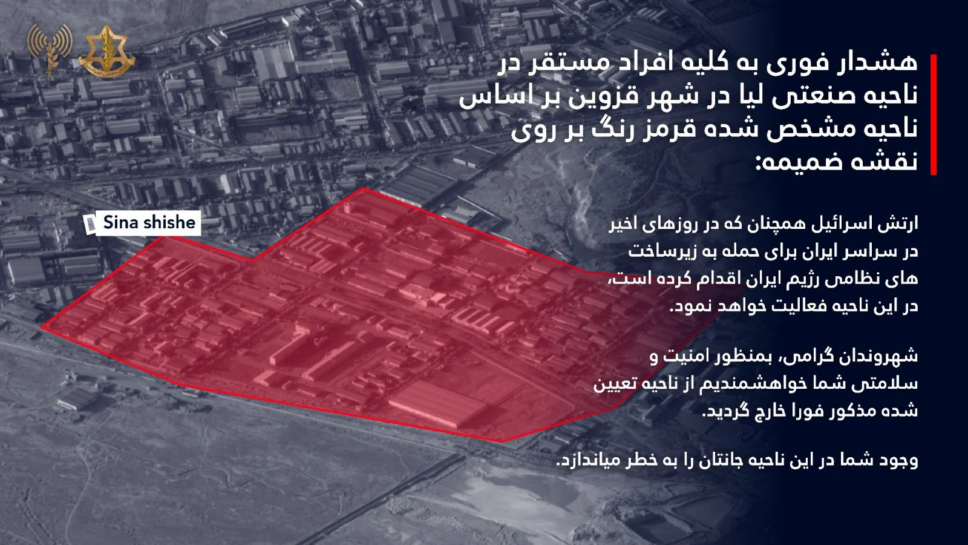 صدر عن الجيش الإسرائيلي ما يلي: "تحذير عاجل لجميع المتواجدين في النقاط التالية: