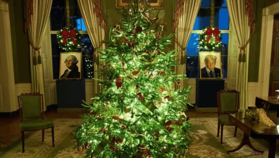 وبسبب هدم الجناح الشرقي للبيت الأبيض هذا العام، جاءت شجرة عيد الميلاد الرسمية التي تُعرض عادة في "الغرفة الزرقاء" لتكرّم أيضاً عائلات "غولد ستار" التي فقدت أحد أفرادها خلال الخدمة العسكرية.