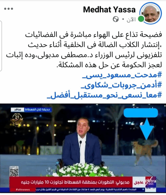 أثار ظهور عدد من الكلاب الضالة خلف مصطفى مدبولي رئيس مجلس الوزراء المصري خلال افتتاح حديقة الفسطاط المركزية تساؤلات عديدة حول أسباب هذه الظاهرة وأبعادها، خاصة في ظل تزايد أعداد الكلاب الضالة في مصر بشكل غير مسبوق.