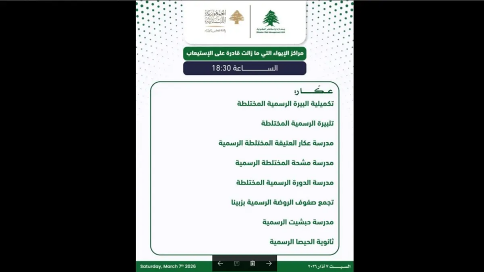 وزعت وحدة إدارة الكوارث عناوين جديدة لمراكز الإيواء.