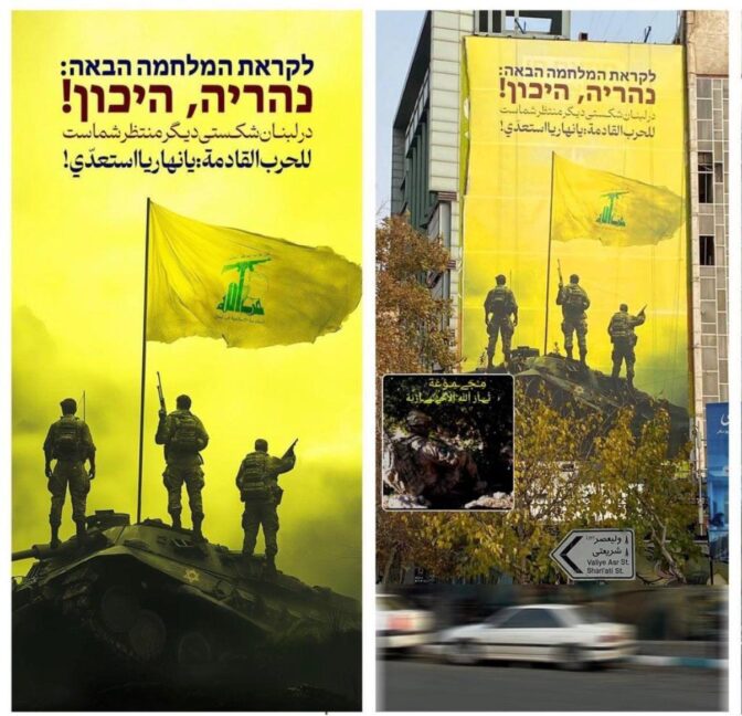 وكُتب عليها: "هزيمة أخرى تنتظركم في لبنان.. يا نهاريا استعدي: للحرب القادمة!".