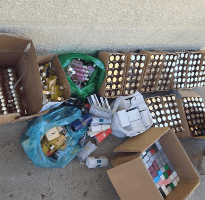 - كميات من البضائع المختلفة بما فيها اكسسوارات الهواتف والعطور المقلدة، وقطع غيار السيارات المهربة، ضبطتها شعبة شتورا.