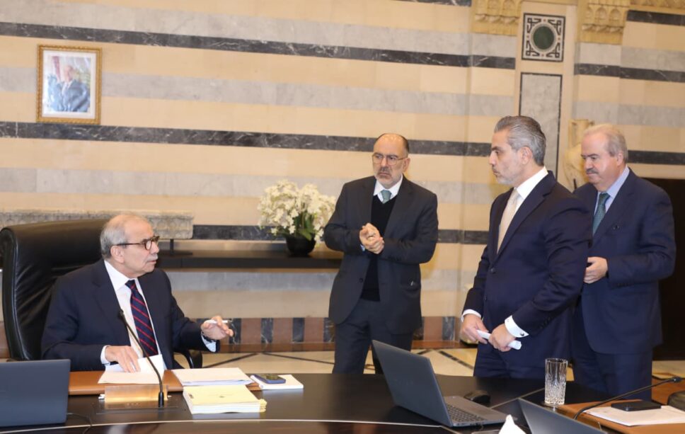 يتراس رئيس مجلس الوزراء نواف سلام في هذه الأثناء جلسة لمجلس الوزراء يحضرها نائب رئيس الحكومة طارق متري ووزراء المالية ياسين جابر، الثقافة غسان سلامة، الدفاع ميشال منسى ، الطاقة والمياه جو صدي، السياحة لورا الخازن، الاقتصاد والتجارة عامر البساط، المهجرين وشؤون تكنولوجيا المعلومات والذكاء كمال شحادة، الداخلية والبلديات العميد احمد الحجار، العدل عادل نصار، الاتصالات شارل الحاج، الشباب والرياضة نور صار، الاتصالات شارل الحاج، الشباب والرياضة نورا بايراقتداريان، التربية والتعليم العالي ريما كرامي، الصناعة دجو عيس الخوري، شؤون التنمية الادارية فادي مكي، الاشغال العامة والنقل فايز رسامني، الاعلام بول مرقص، البيئة تمارا الزين ، الصحة العامة ركان ناصر الدين.