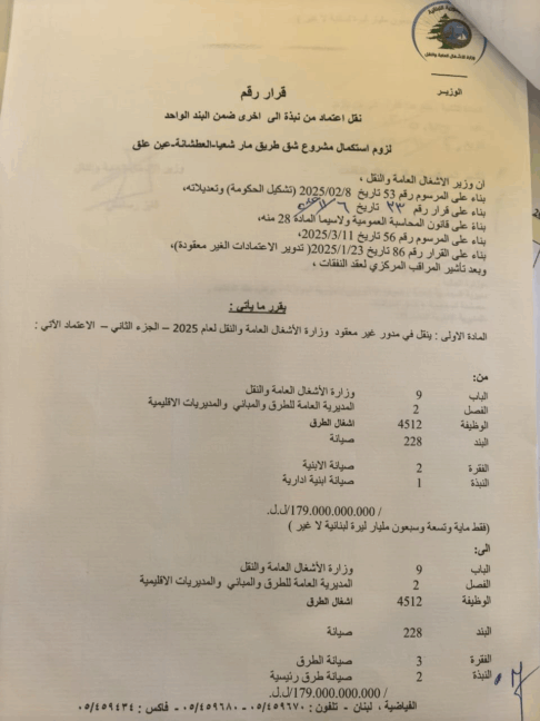 كتب النائب ابراهيم كنعان عبر "أكس": "وصلة العطشانة (مارشعيا - العطشانة - عين علق) إلى التنفيذ بعد تأشير المراقب المركزي لعقد النفقات في وزارة المالية على قرار وزير الأشغال فايز رسامني لنقل اعتماد ٢ مليون دولار أميركي لانجاز هذه الطريق. مبروك للمتن".