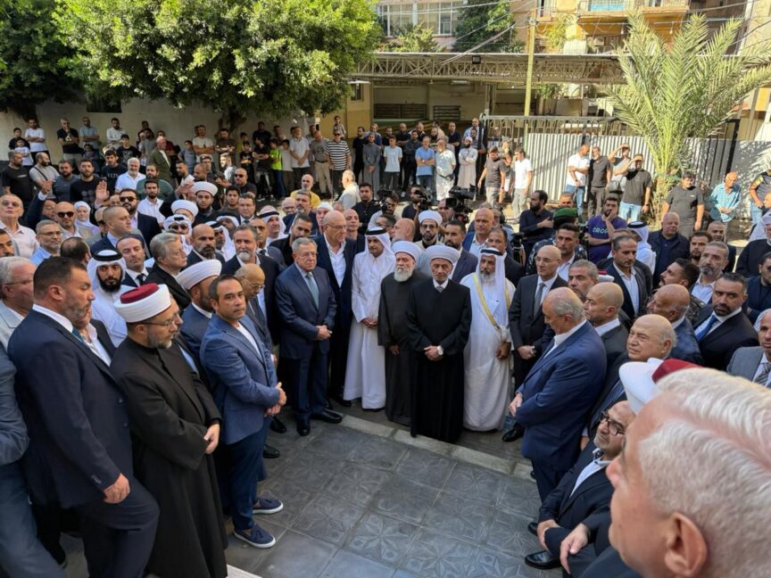 وكان المفتي دريان قد استقبل الوزير القطري الغانم والوفد المرافق في مطار رفيق الحريري في بيروت، واصطحبه إلى دار الفتوى حيث أقام على شرفه مأدبة غداء تكريمية قبيل افتتاح المسجد.