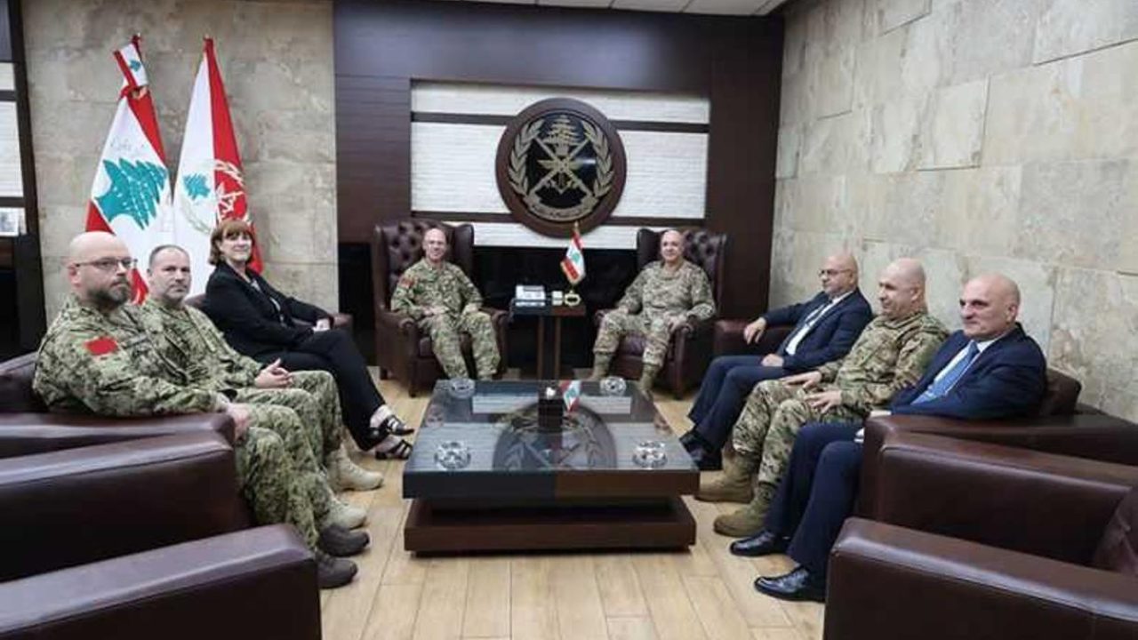 التقى قائد الجيش العماد جوزاف عون في مكتبه في اليرزة الجنرال الكندي Louis Lapointe بحضور السفيرة الكندية في لبنان Stefanie McCollum.
