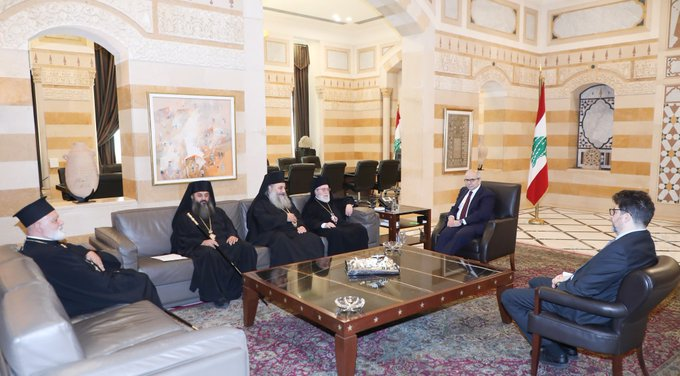 واستقبل الرئيس سلام مطران زحلة و بعلبك وتوابعها للروم الأرثوذكس سيادة المطران أنطونيوس الصوري ومطران صيدا والجنوب للروم الأرثوذكس المطران الياس الكفوري والأب بورفيريوس إبراهيم والأب جوزيف خوري، وتناول اللقاء مجمل المستجدات والأوضاع ومطالب الأهالي في زحلة والبقاع والجنوب.