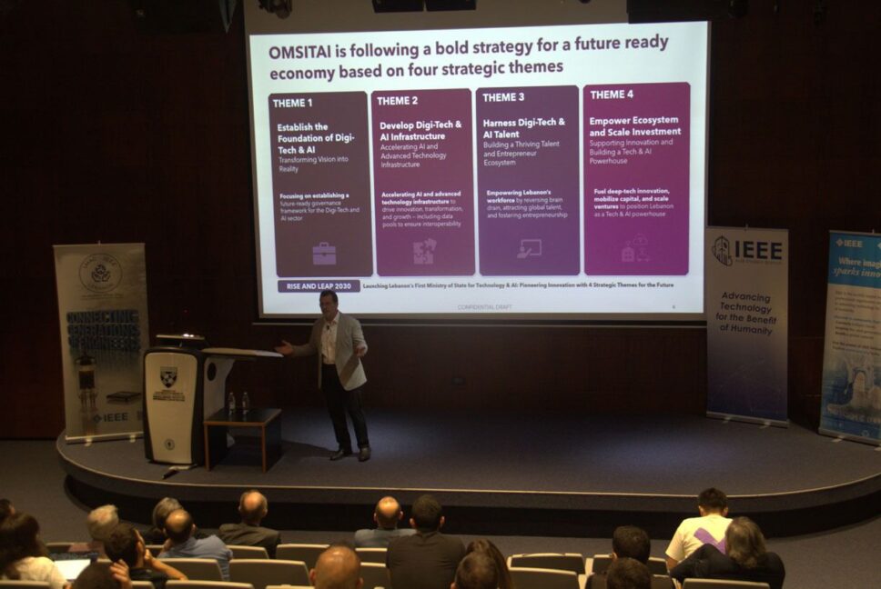 • إطلاق “قمة التكنولوجيا والذكاء الاصطناعيلبنان 2025”، التي تجمع الحكومة والقطاع الخاص والجامعات والاغتراب لتوحيد الرؤية وتحديد الأولويات وإطلاق مشاريع نموذجية وطنية.