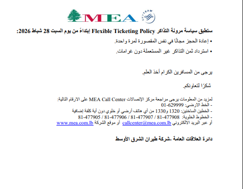 طيران الشرق الأوسط: تعديلات على بعض الرحلات اليوم