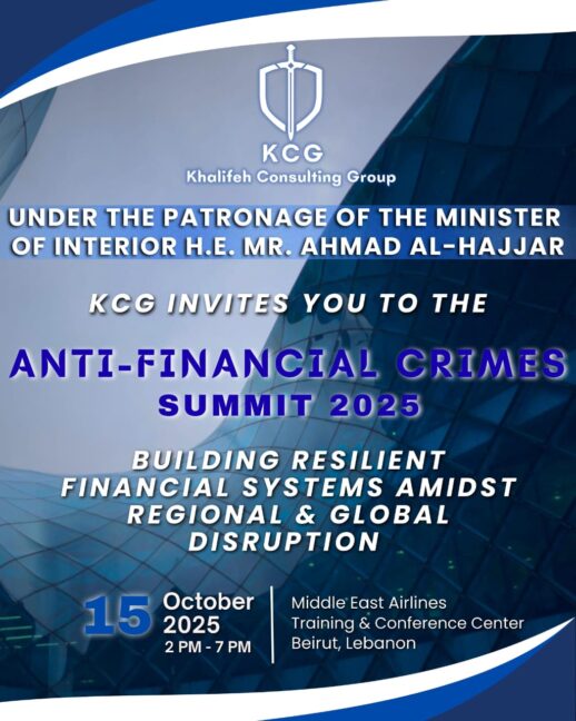 تعقد قمة KCG لمكافحة الجرائم المالية 2025 تحت عنوان "بناء أنظمة مالية مرنة في ظل الاضطرابات العالمية" في لبنان، لتكون منصة إقليمية تسعى إلى مواجهة تحديات الفساد، الجرائم السيبرانية، مخاطر العقوبات، والتطبيقات التنظيمية.