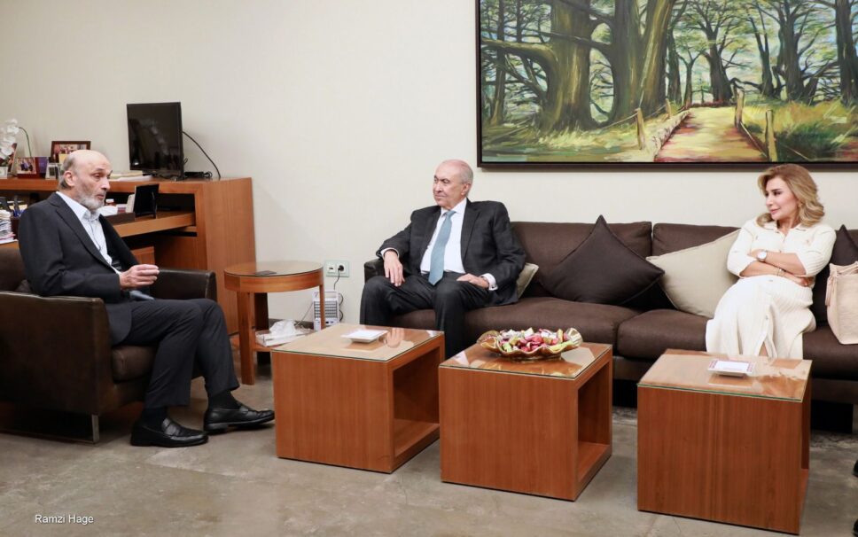 عرض رئيس حزب القوات اللبنانية سمير جعجع في معراب مع النائب فؤاد مخزومي، لآخر التطورات السياسية على الصعيدين المحلي والإقليمي، في حضور عضو تكتل الجمهورية النائب غسان حاصباني، المستشارة السياسية لمخزومي كارول زوين، معاون الامين العام لشؤون الانتخابات في "القوات" جاد دميان.