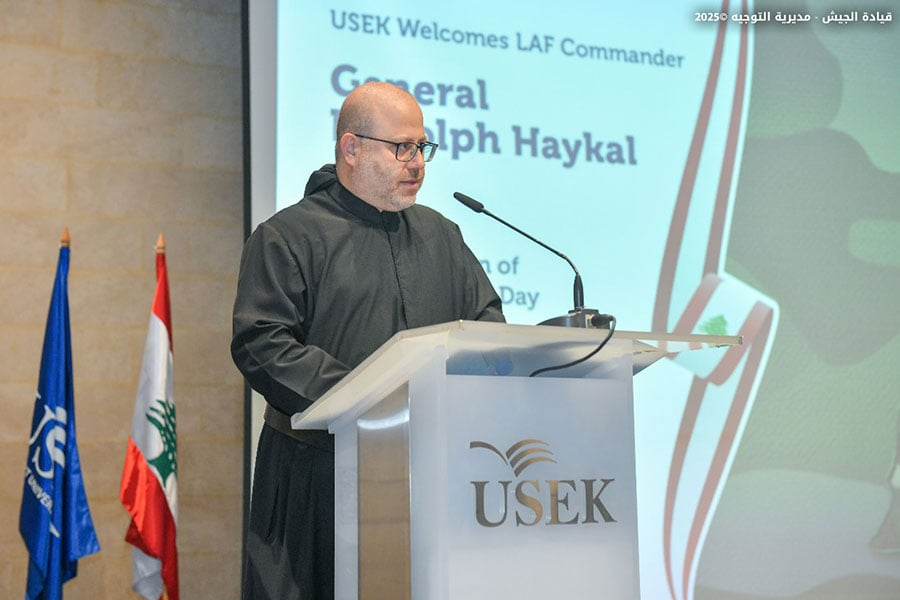 وحضر الجلسة رئيس الجامعة الأب جوزيف مكرزل والأساتذة والطلاب، إضافةً إلى عقيلة قائد الجيش وعدد من الضباط، وجاءت في سياق تعزيز العلاقات بين المؤسسة العسكرية وفئة الشباب في الجامعات.