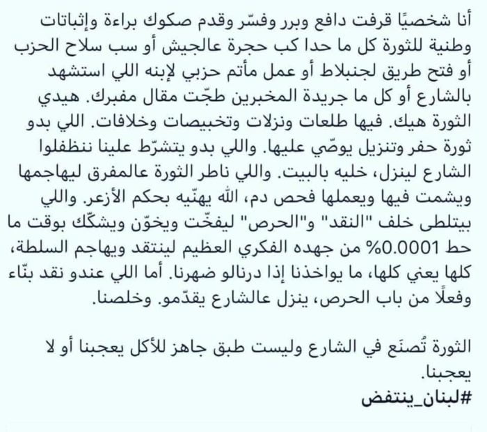 في لبنان المشهد السياسي يتأرجح بين الانهيار ومحاولة تمرير الوقت من قبل السلطة المنتهية الصلاحية ولا الثورة توقفت ولا مراهنه السلطة على عامل الوقت فشلت والوضع ينهار يوما بعد يوما .