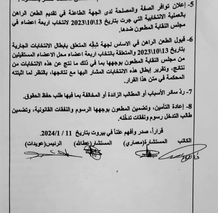 القاضي عويدات أصدر حكماً بإبطال نتائج الانتخابات الفرعية لمجلس نقابة خبراء المحاسبة