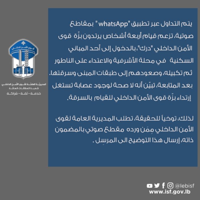 الأمن الداخلي: أعيدوا التوضيح الى المرسِل توخياً للحقيقة