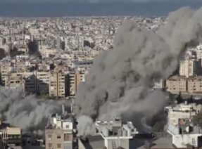 بالفيديو: لحظة سقوط صاروخ على مبنى سكني في الشياح