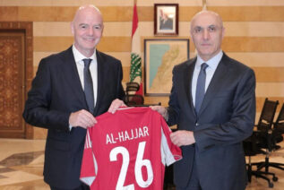 الحجار استقبل إنفانتينو.. تبادل درع الوزارة وقميص "فيفا"