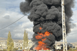 بالفيديو: حريق كبير على "اوتوستراد" زحلة