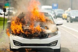 بالفيديو: احتراق سيارة على طريق عام بحمدون