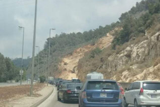 بالصورة: سقوط صخور على أوتوستراد المتن السريع